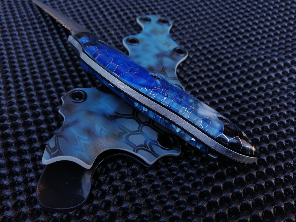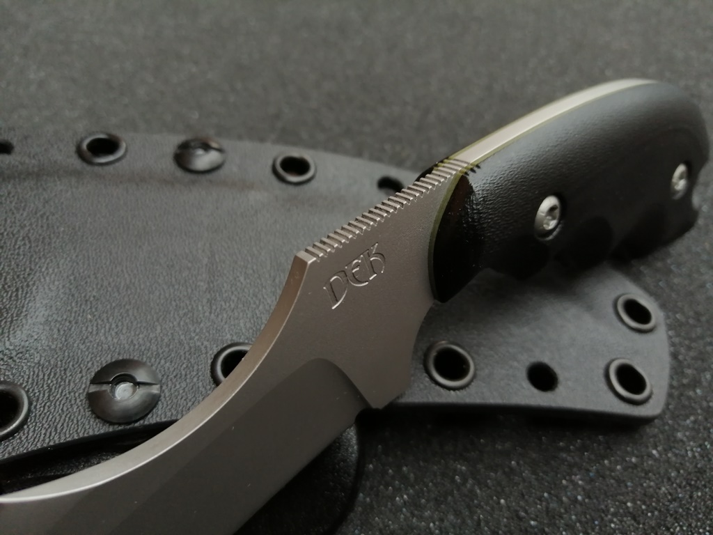 moderných materiáloch ako je FR4 alebo G10 a kydex. U tohto modelu je čepeľ ako